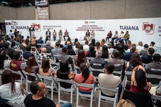 Tijuana, Baja California, 13 de marzo de 2026.- El presidente municipal de Tijuana, Ismael Burgueño Ruiz, encabezó en Palacio Municipal la toma de protesta de integrantes de organismos representativos de la sociedad que se incorporarán a las Juntas de Gobierno de diversas entidades paramunicipales del XXV Ayuntamiento.
