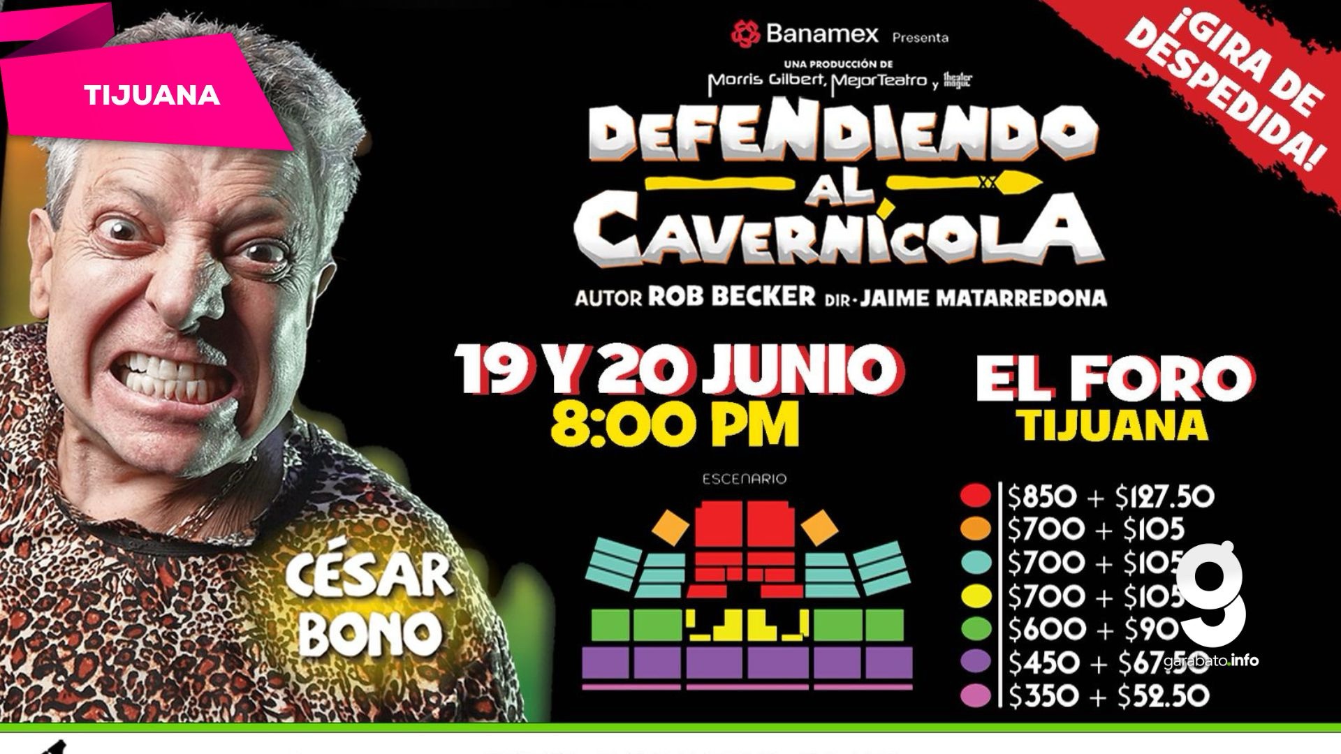Tijuana, B.C., 15 de junio de 2025.— Como parte de su gira de despedida, la obra “Defendiendo al Cavernícola” se presentará en Tijuana los próximos 19 y 20 de junio en el recinto El Foro. El espectáculo será protagonizado por el primer actor César Bono, quien ha interpretado este monólogo durante más de dos décadas y en más de 5,100 funciones a nivel nacional.