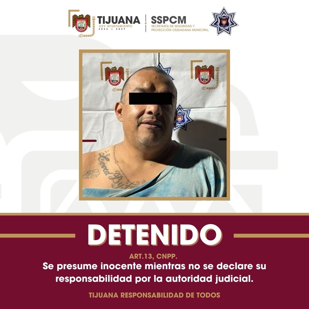 Tijuana, Baja California, 8 de septiembre de 2025. Elementos de la Policía Municipal detuvieron a un hombre acusado de agredir físicamente a una mujer de 70 años en la colonia Campos. El hecho se registró luego de un reporte canalizado a través de la Central de Radio.