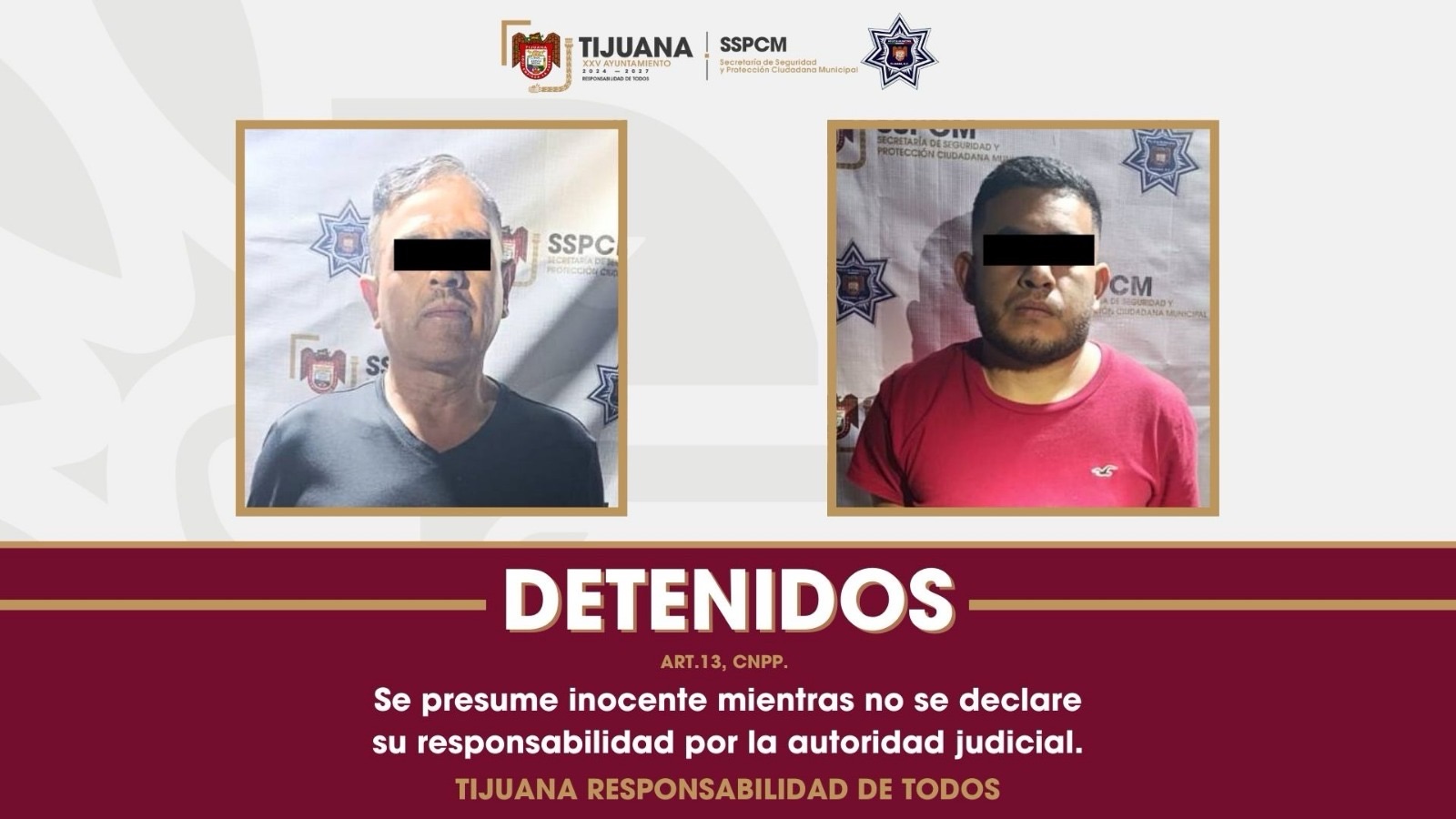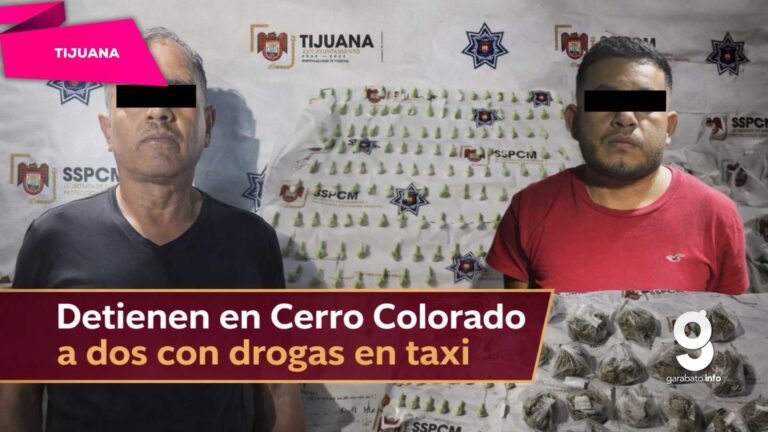 Tijuana, Baja California, 6 de febrero de 2026.- Del patrullaje preventivo realizado en la colonia Cerro Colorado derivó la detención de dos personas, luego de que agentes de la Policía Municipal interceptaran un taxi libre que circulaba a exceso de velocidad, lo que motivó una revisión conforme al Reglamento de Tránsito Municipal.