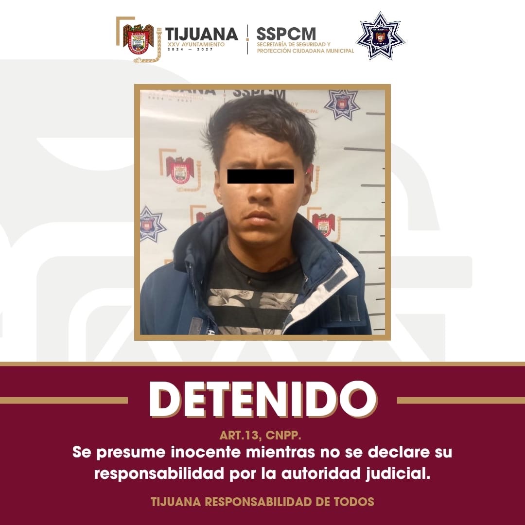 Tijuana, Baja California, a 29 de septiembre de 2025. Elementos de la Secretaría de Seguridad y Protección Ciudadana Municipal (SSPCM) detuvieron a un hombre señalado por abuso sexual en un domicilio de la colonia Sánchez Taboada, tras un reporte emitido al número de emergencias 9-1-1.