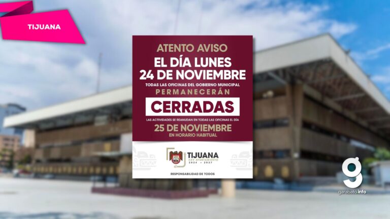Tijuana, Baja California, 22 de noviembre de 2025.– La administración municipal anunció que el próximo lunes 24 de noviembre será día inhábil para el personal del Ayuntamiento de Tijuana, por lo que la atención al público permanecerá suspendida en Palacio Municipal, delegaciones y organismos paramunicipales.