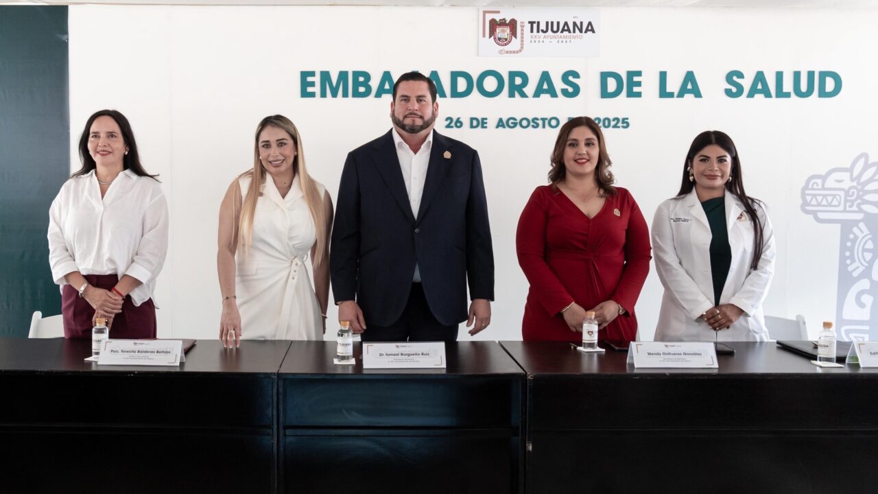 Tijuana, Baja California, 26 de agosto de 2025.- El presidente municipal de Tijuana, Ismael Burgueño Ruiz, encabezó la toma de protesta de 302 Embajadoras de la Salud, una estrategia que busca consolidar la participación ciudadana en la promoción de hÔbitos saludables y la prevención de enfermedades en las comunidades de la ciudad. El acto se realizó en la explanada del Monumento a la Madre, donde autoridades municipales destacaron la importancia de sumar esfuerzos entre sociedad y gobierno para construir entornos mÔs seguros y saludables.