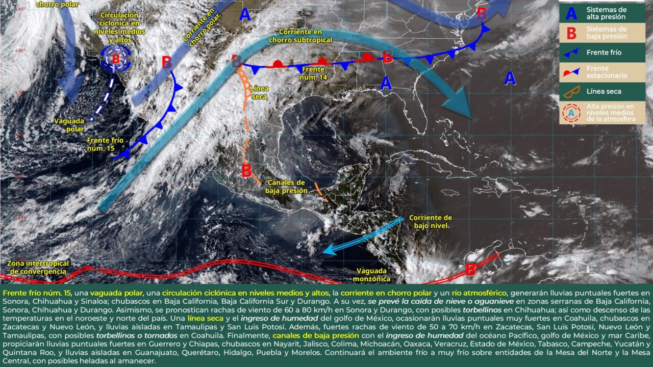 En la zona serrana —incluyendo la Sierra de Juárez y San Pedro Mártir— el ingreso de aire frío y húmedo favorecerá un ambiente claramente invernal, con probabilidad de nieve o aguanieve en las partes más altas. Estas condiciones podrían complicar la circulación en tramos carreteros de montaña, en particular donde ya se registran temperaturas muy bajas durante la noche y madrugada.