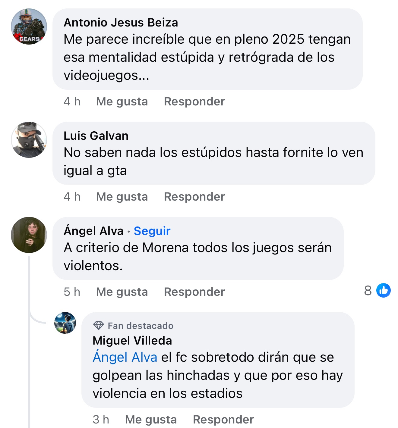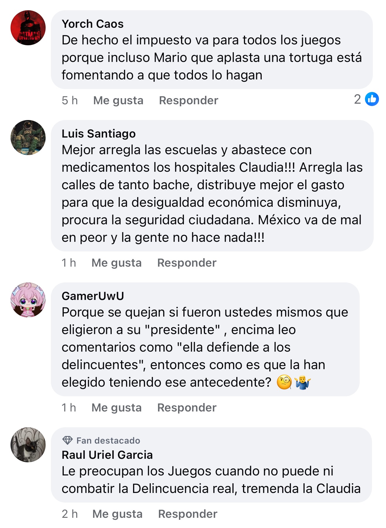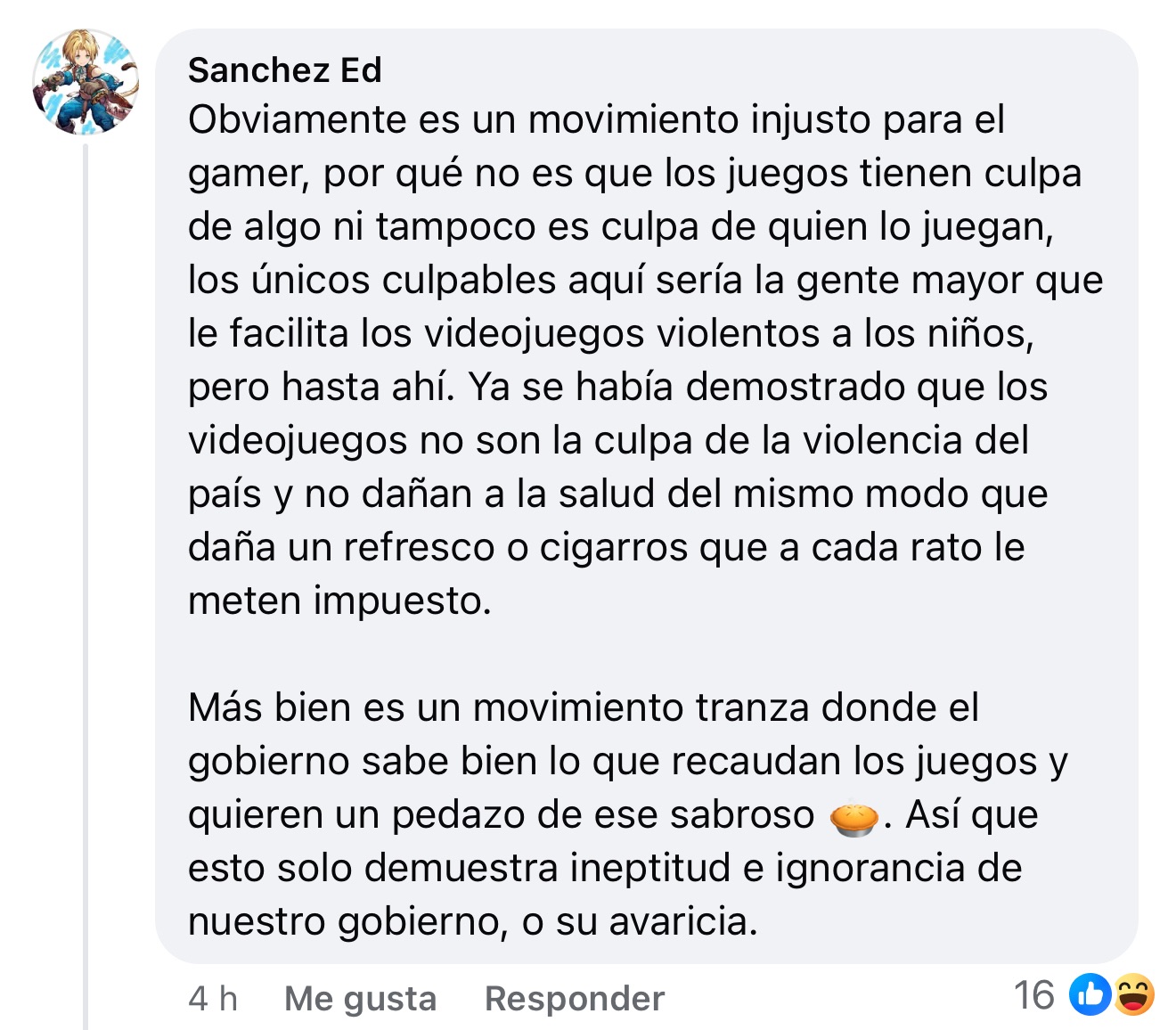 Un comentario destacado resume el sentir de parte de la comunidad: “Los videojuegos no son la causa de la violencia del país; es un movimiento injusto para el gamer, el gobierno solo quiere una rebanada de ese pastel”.