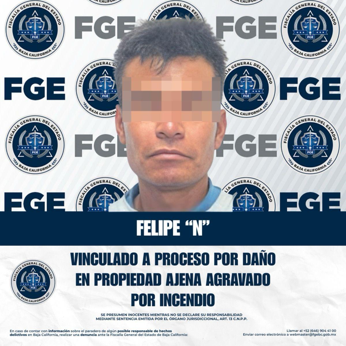 Tijuana, Baja California, 14 de noviembre de 2025.- La Fiscalía Regional de Tijuana confirmó la vinculación a proceso de Felipe “N”, quien permanecerá en prisión preventiva tras ser señalado por el incendio de dos patrullas de la Policía Municipal registrado el 6 de noviembre.