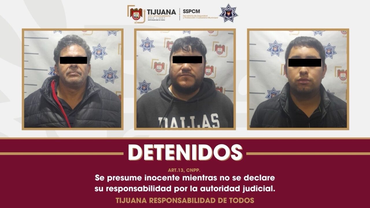 Dentro del vehículo viajaban tres hombres identificados como Miguel Ángel “N”, de 52 años; Javier “N”, de 30; y José “N”, de 30, originario de San Diego, California. Los individuos fueron detenidos y presentados ante la autoridad correspondiente, donde se iniciaron las carpetas de investigación para esclarecer el caso y determinar su participación en los hechos.