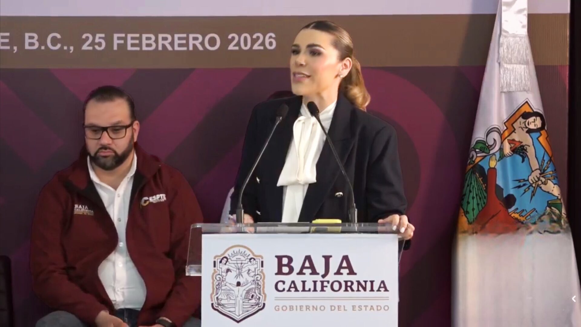Tecate, Baja California, 25 de febrero de 2026.- Tras una jornada marcada por incendios provocados y bloqueos en distintos puntos del estado, la gobernadora Marina del Pilar Ávila Olmeda informó que la mesa estatal de seguridad se declaró en sesión permanente y que, en menos de 24 horas, se logró la detención de 26 personas vinculadas con los hechos.