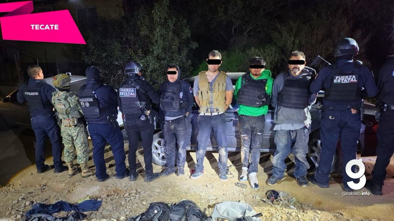 Tecate, Baja California, jueves 15 de enero de 2026.- Un despliegue coordinado de fuerzas de seguridad permitió la detención de cuatro hombres en posesión de armamento y equipo balÃstico, luego de que un reporte ciudadano alertara sobre detonaciones de arma de fuego en una zona urbana del municipio.