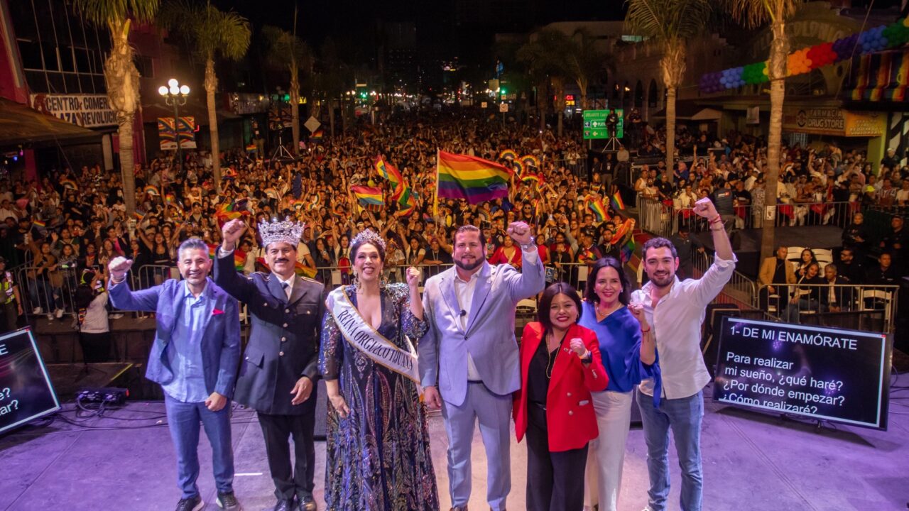 TIJUANA, BAJA CALIFORNIA, 28 de junio de 2025. Más de 15 mil personas se congregaron la noche del sábado en la calle Primera y Avenida Revolución, en pleno corazón de Tijuana, para asistir al concierto conmemorativo por el Mes del Orgullo LGBTTTIQA+, donde la artista Regina Orozco fue coronada como Reina del Orgullo 2025.