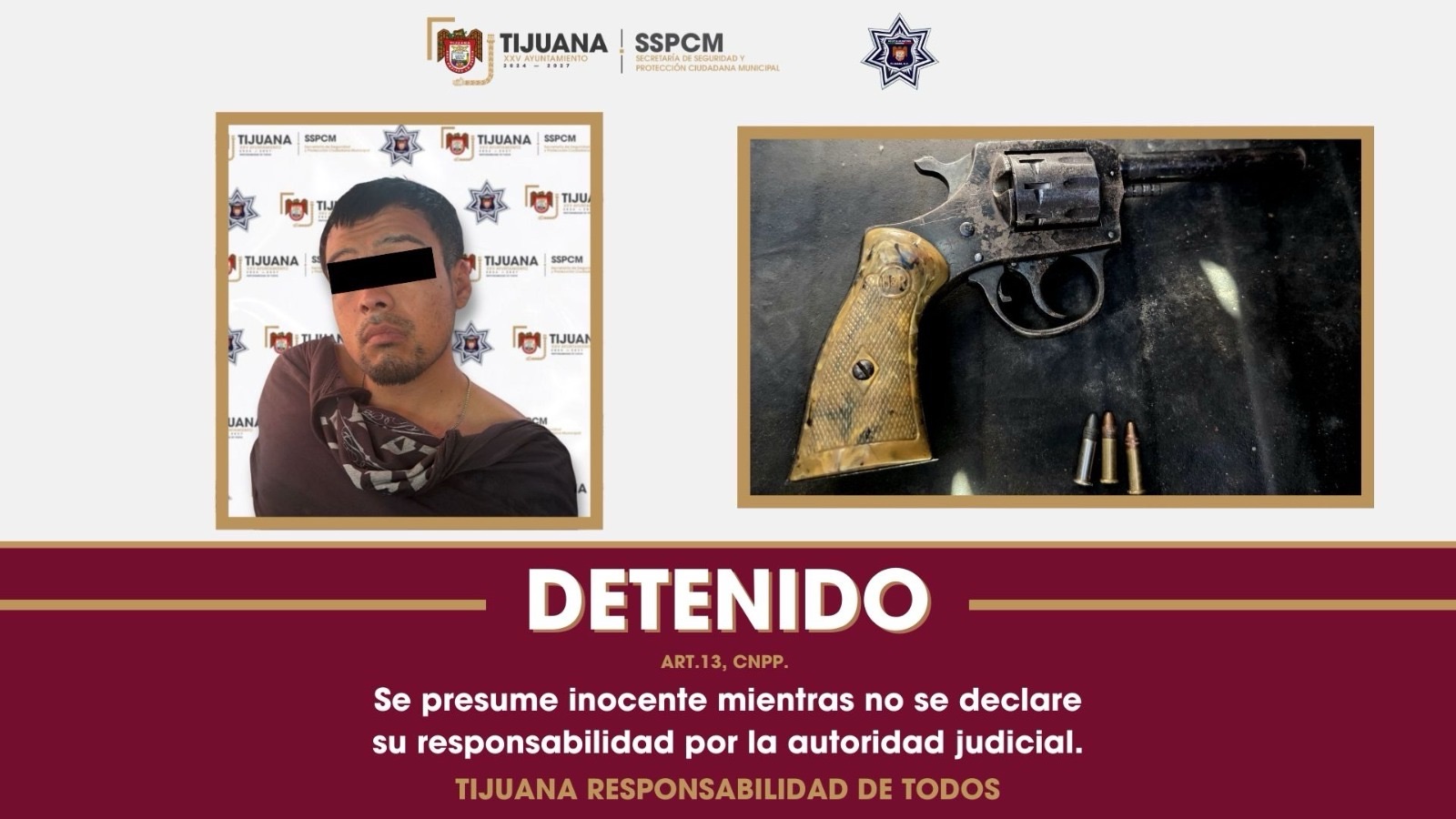 El detenido fue puesto a disposición del Ministerio Público, instancia que definirá su situación jurídica y determinará los cargos que podrían derivarse tanto por la posesión del arma como por la conducción del vehículo con reporte de robo y los daños ocasionados.