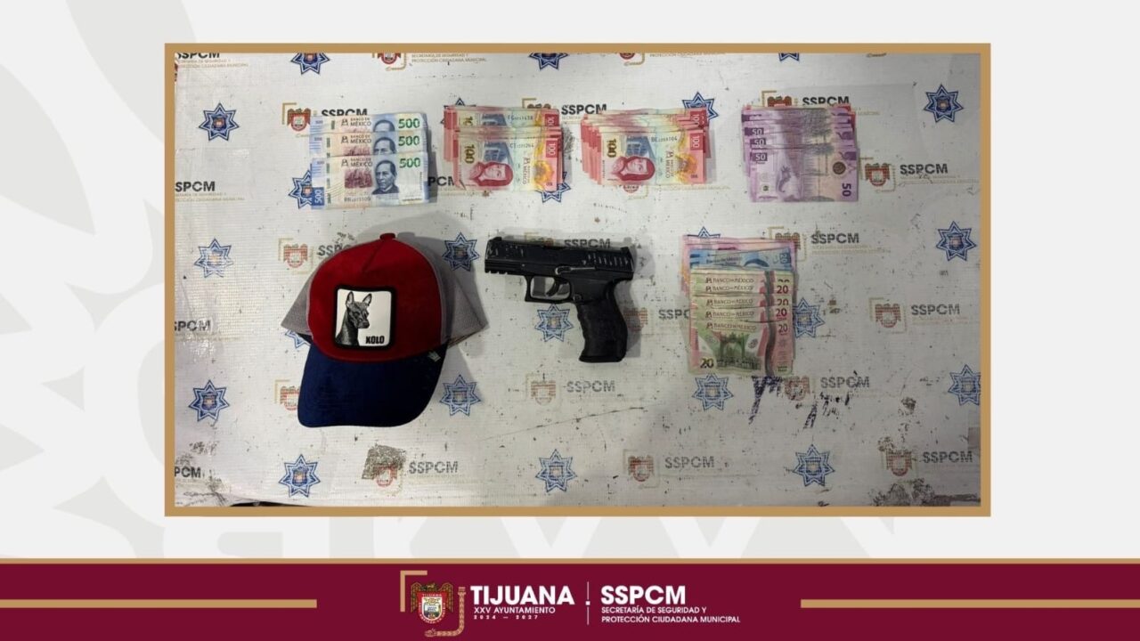 Durante la inspección, los agentes localizaron un arma tipo pistola de utilería color negro, además de 7 mil 400 pesos en efectivo, presuntamente obtenidos en el robo reciente.