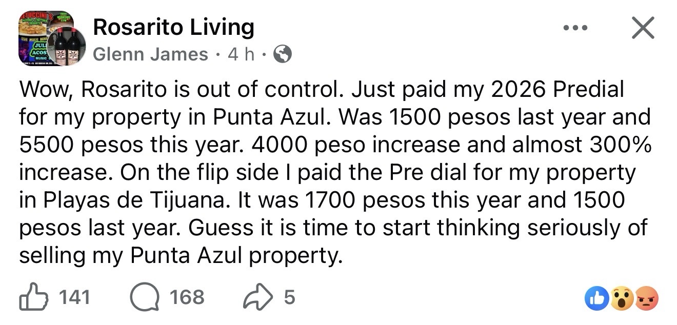 Playas de Rosarito, Baja California, 22 de enero de 2026.- El cobro del impuesto predial correspondiente al ejercicio fiscal 2026 en Playas de Rosarito ha marcado un punto de inflexión en la relación entre el gobierno municipal y un sector de los contribuyentes, luego de que se documentaran incrementos inusuales y abruptos en el monto a pagar, particularmente en zonas residenciales como Punta Azul.