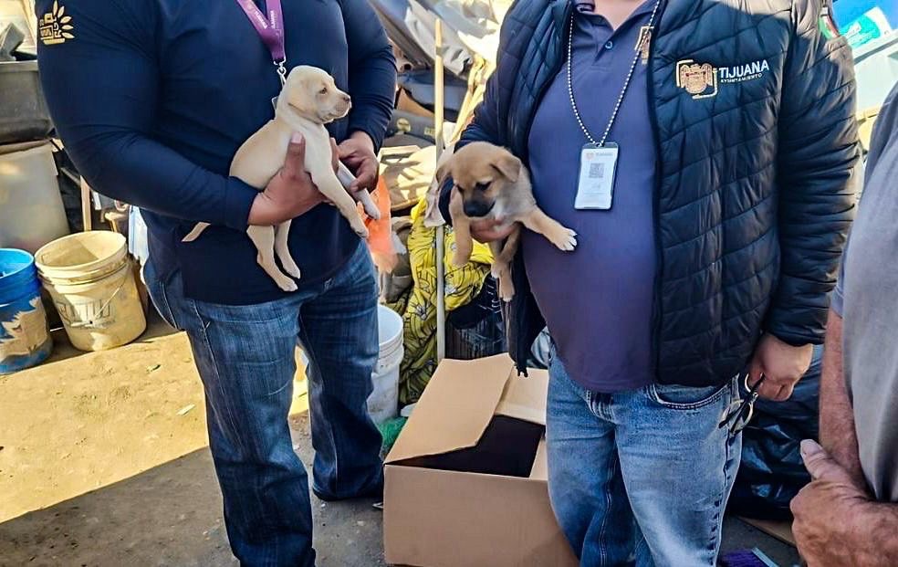 Tijuana, Baja California, 1 de diciembre de 2025. Inspectores municipales desplegaron una serie de operativos en los alrededores de la LÃnea Internacional San Ysidro y en distintos mercados sobre ruedas, donde fueron localizados cuatro cachorros ofrecidos en condiciones irregulares y, en algunos casos, de evidente descuido.