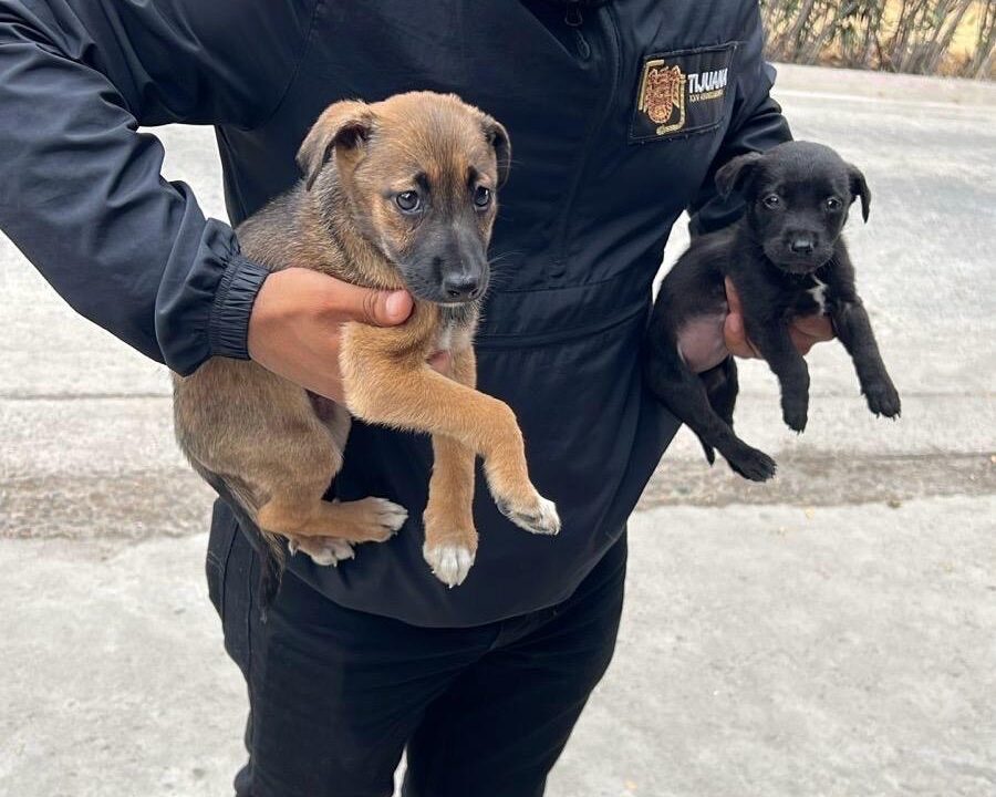 Tijuana, Baja California, 29 de agosto de 2025. Inspectores de la Dirección de Inspección y Verificación Municipal rescataron a dos cachorros que eran ofrecidos de manera ilegal en las inmediaciones de la Garita de San Ysidro.