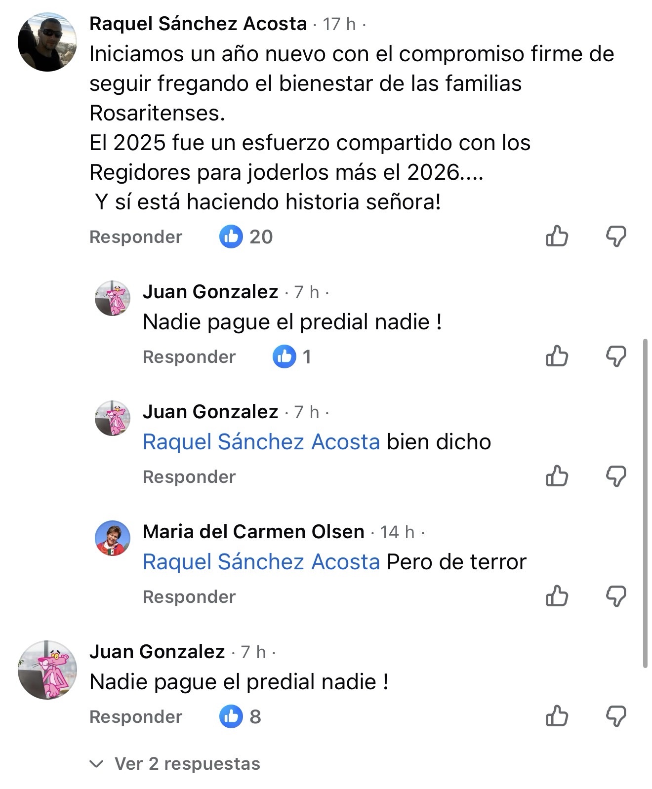 En los comentarios visibles de la publicación, una parte significativa de usuarios cuestionó el contraste entre el discurso oficial y su percepción de la realidad cotidiana en el municipio. Las reacciones se concentraron principalmente en el incremento del impuesto predial, señalado como desproporcionado por habitantes de diversas colonias, así como en señalamientos sobre servicios públicos, seguridad y uso de recursos municipales.