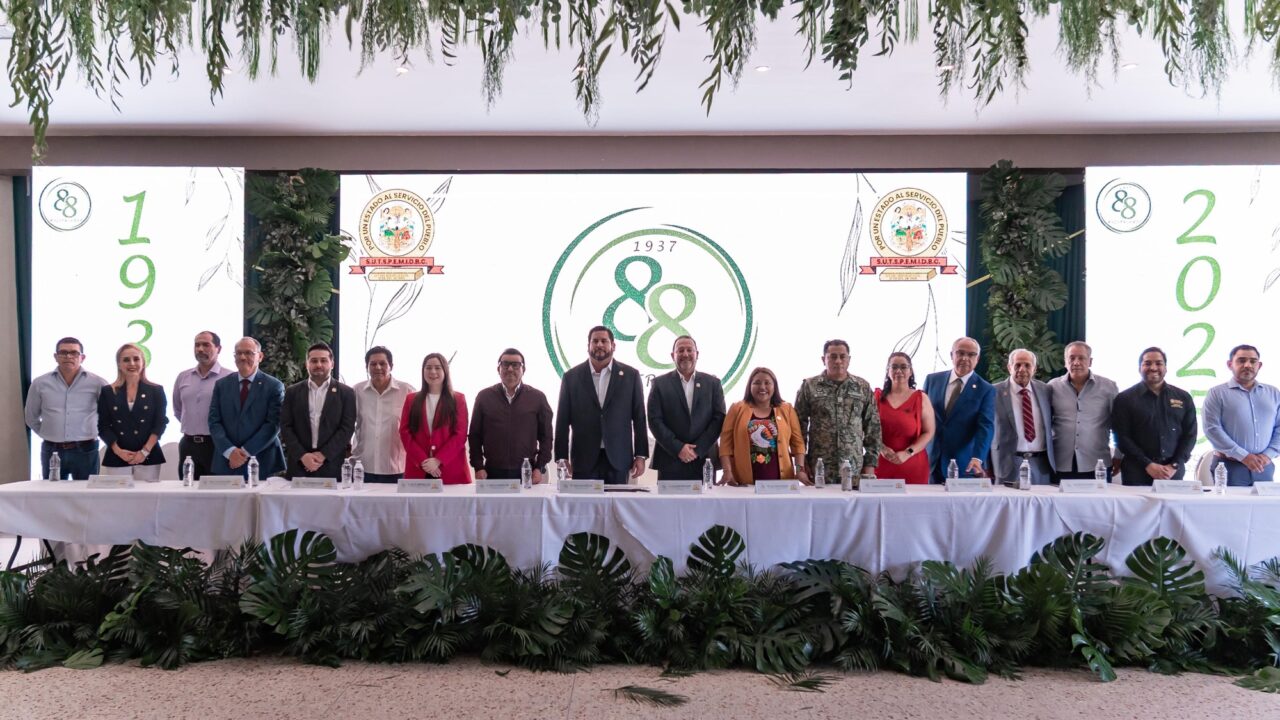 Tijuana, Baja California, 18 de septiembre de 2025.- La Asamblea Solemne por el 88 aniversario de la fundación del Sindicato Único de Trabajadores al Servicio de los Poderes del Estado, Municipios e Instituciones Descentralizadas de Baja California reunió autoridades estatales, municipales y representantes sindicales en un acto de reconocimiento a la trayectoria de 42 empleados por más de dos décadas de servicio público.