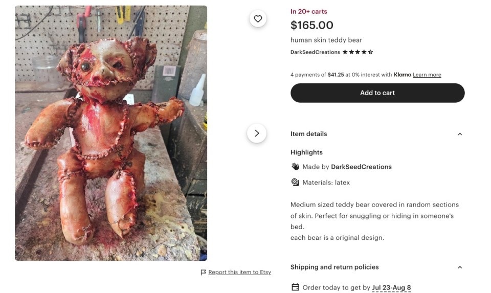 El artista, con sede en Carolina del Sur, confirmó que la pieza fue enviada por correo a Victorville días antes del hallazgo, aunque desconocía que sería colocada en un espacio público. En su tienda digital, el producto aparece listado como una figura de horror con un costo cercano a los 165 dólares. La intención era puramente artística, aunque su uso generó temor e interpretaciones alarmantes.