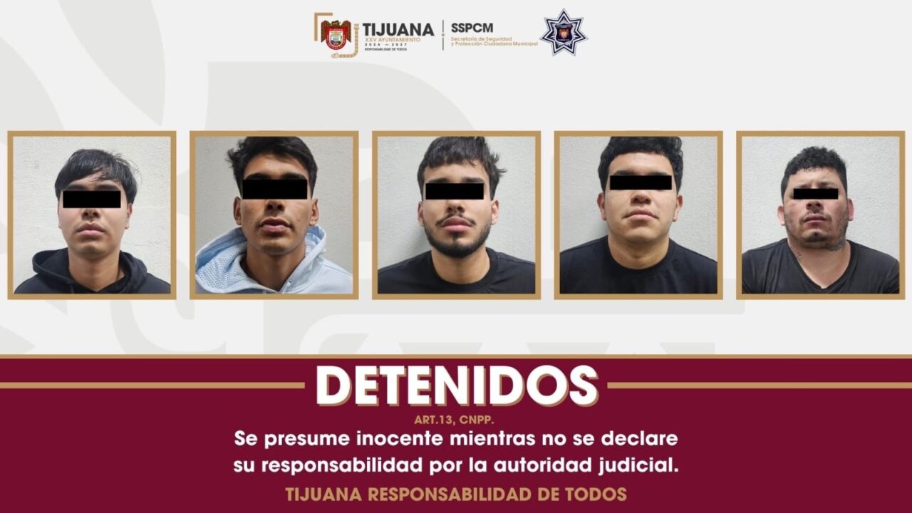 Tijuana, Baja California, 19 de diciembre de 2025. Cinco personas fueron detenidas por elementos de la Policía Municipal de Tijuana luego de ser señaladas como presuntas responsables de un robo con violencia ocurrido en un domicilio del fraccionamiento López Lucio.