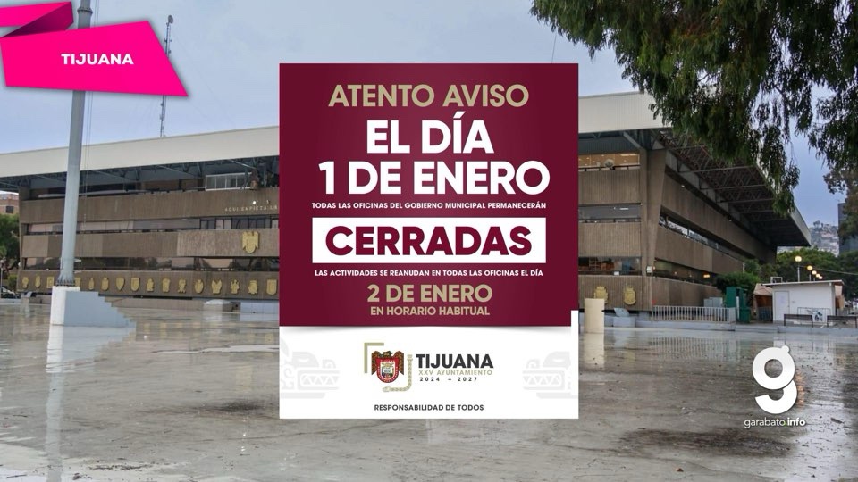 Tijuana, Baja California, 30 de diciembre de 2025.- El XXV Ayuntamiento de Tijuana confirmó que el jueves 1 de enero de 2026 será considerado día inhábil para el personal municipal, medida que implica el cierre temporal de oficinas en Palacio Municipal, delegaciones y áreas paramunicipales. Las actividades administrativas y la atención al público se reanudarán el viernes 2 de enero, de acuerdo con la planificación de fin de año establecida por la administración local.