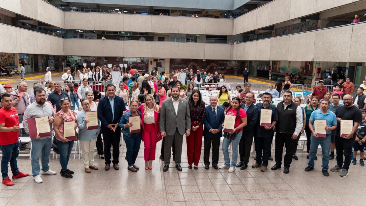 Tijuana, Baja California, a 21 de agosto de 2025.- Un total de 96 familias tijuanenses recibieron sus títulos de propiedad en un acto celebrado en Palacio Municipal, con lo que consolidaron la certeza jurídica sobre sus viviendas. La entrega fue encabezada por el presidente municipal, Ismael Burgueño Ruiz, acompañado de autoridades estatales y federales.