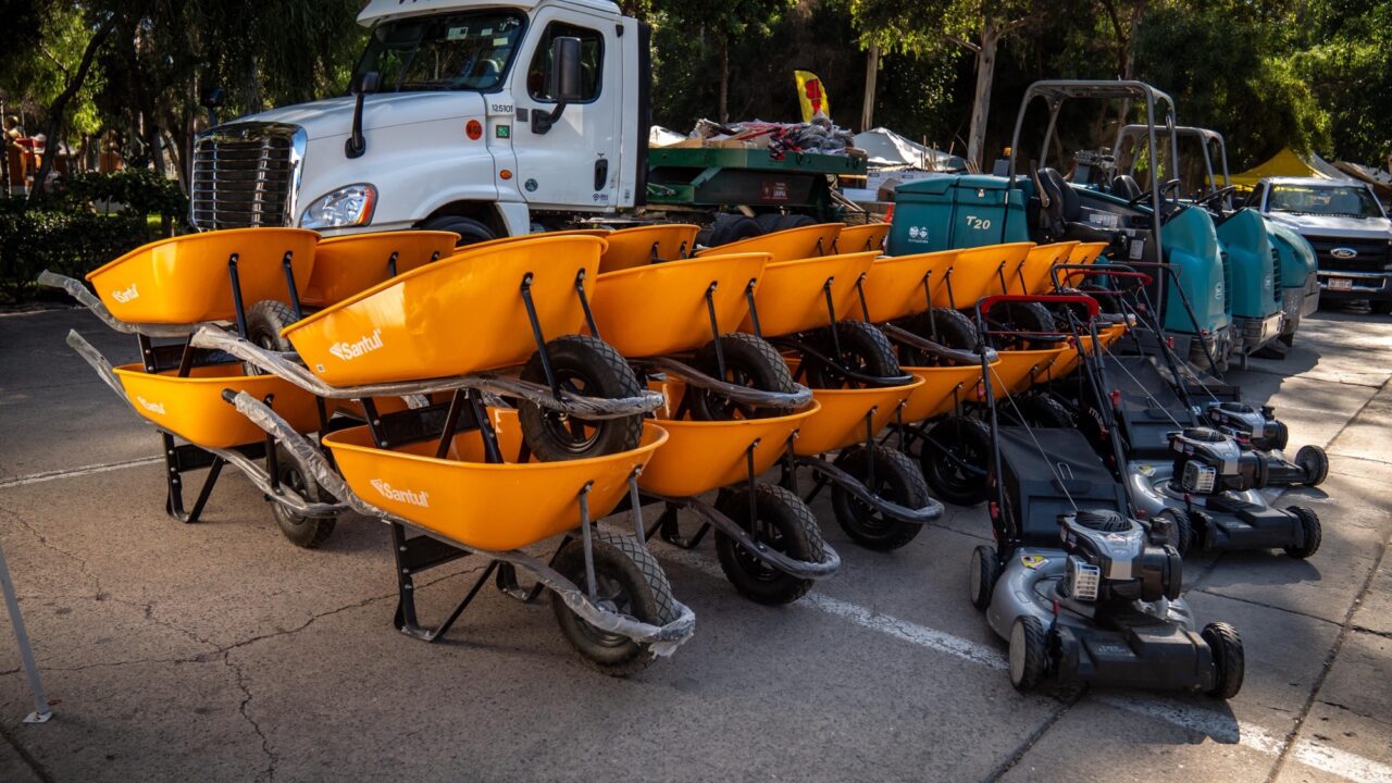 Para estas acciones se destinaron equipos como nueve barredoras mecánicas, seis retroexcavadoras, seis camiones de volteo, cinco máquinas de pintura vial, seis hidrolavadoras de presión, 13 desbrozadoras y un dron especializado en limpieza de altura. Este último se utilizó durante el arranque para mostrar procesos de eliminación de graffiti y suciedad en estructuras emblemáticas como el Arco de la avenida Revolución y el Palacio Municipal.